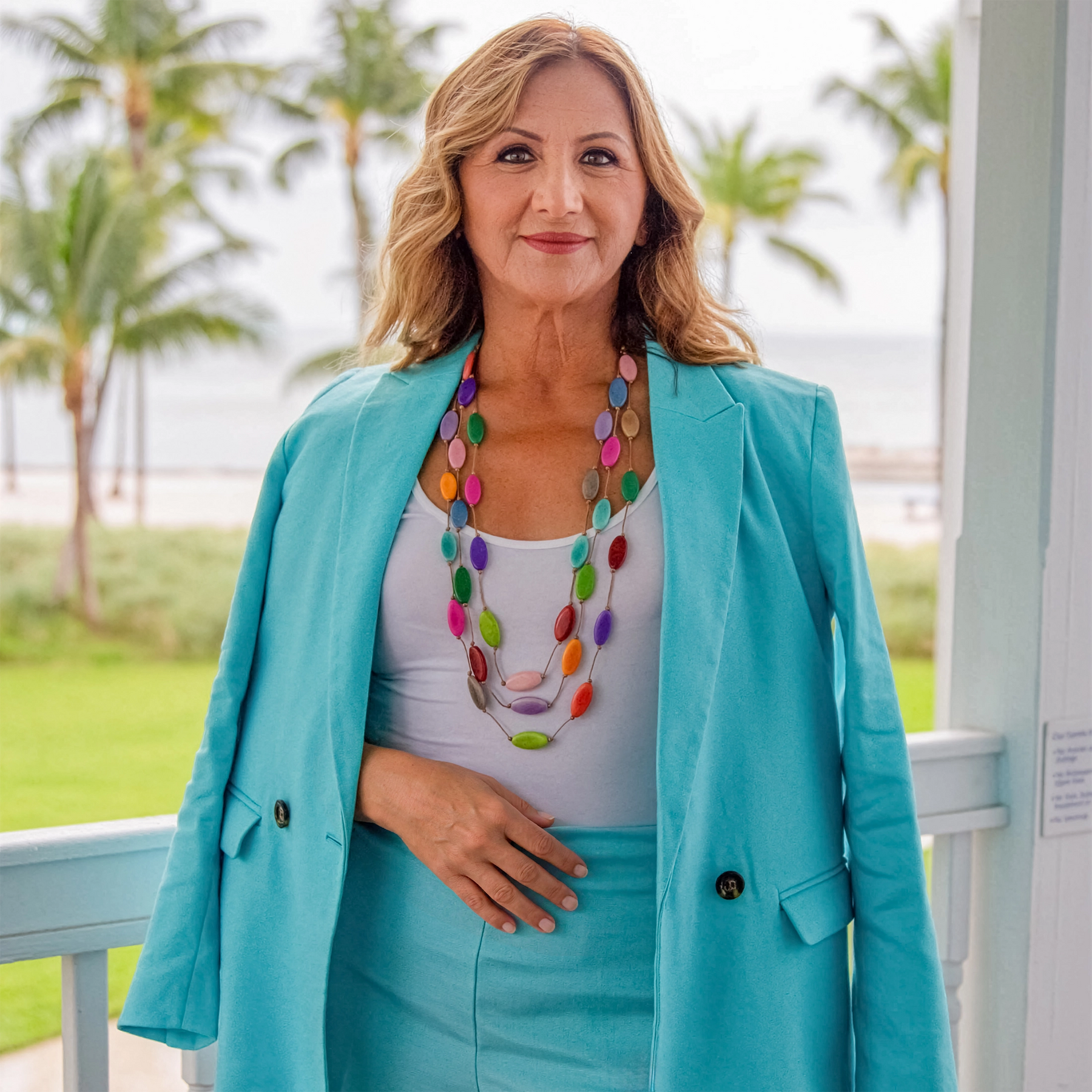 The Olympia Necklace radiates bold, natural elegance through its sculpted tagua pendants, each shaped to evoke organic movement and artisanal charm. Suspended from a vibrant handcrafted chain, this piece is designed to stand alone—an unmistakable statement necklace that celebrates sustainable artistry and vivid color.