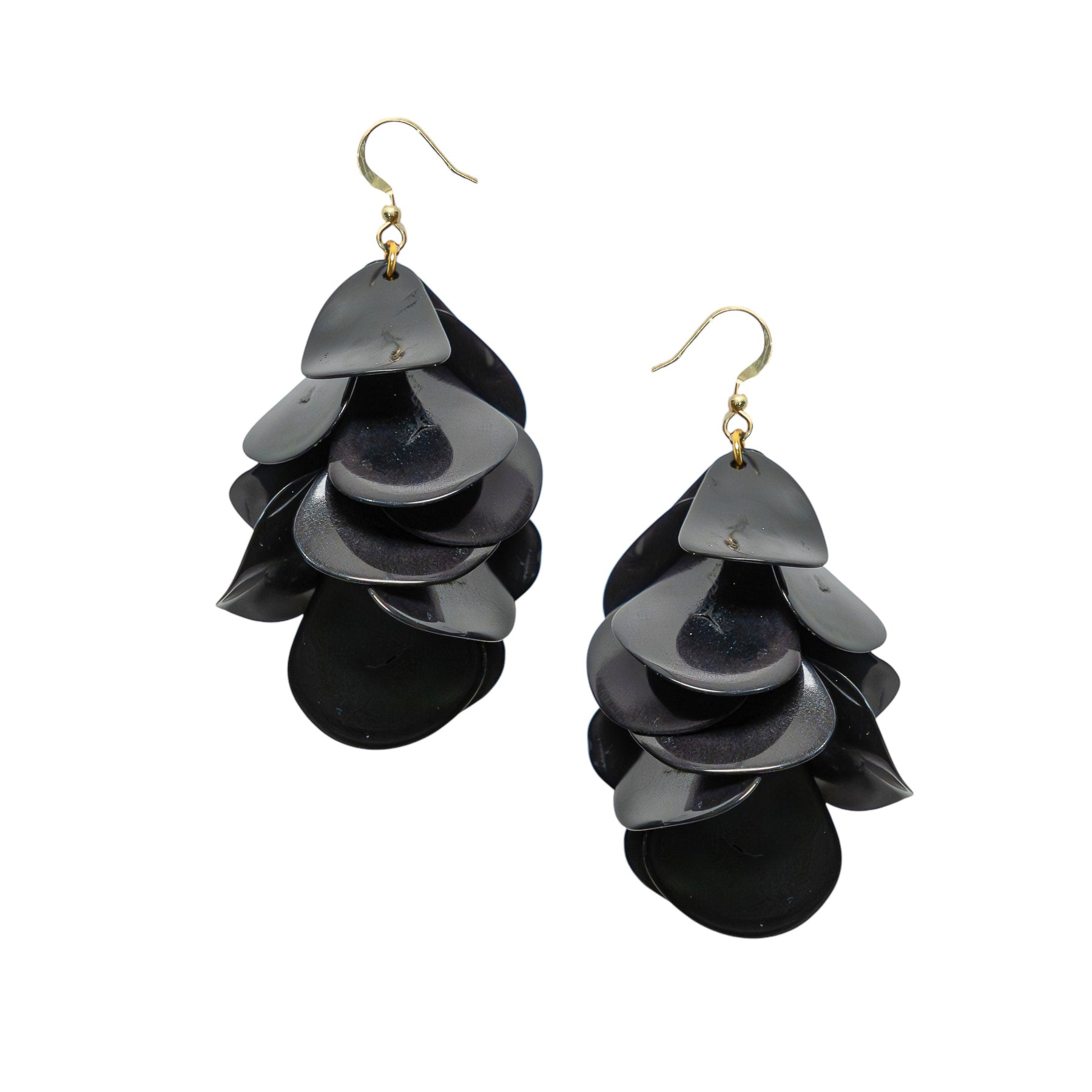 Sustainability meets style with these gorgeous earrings made with a waterfall of colorful tagua slices.