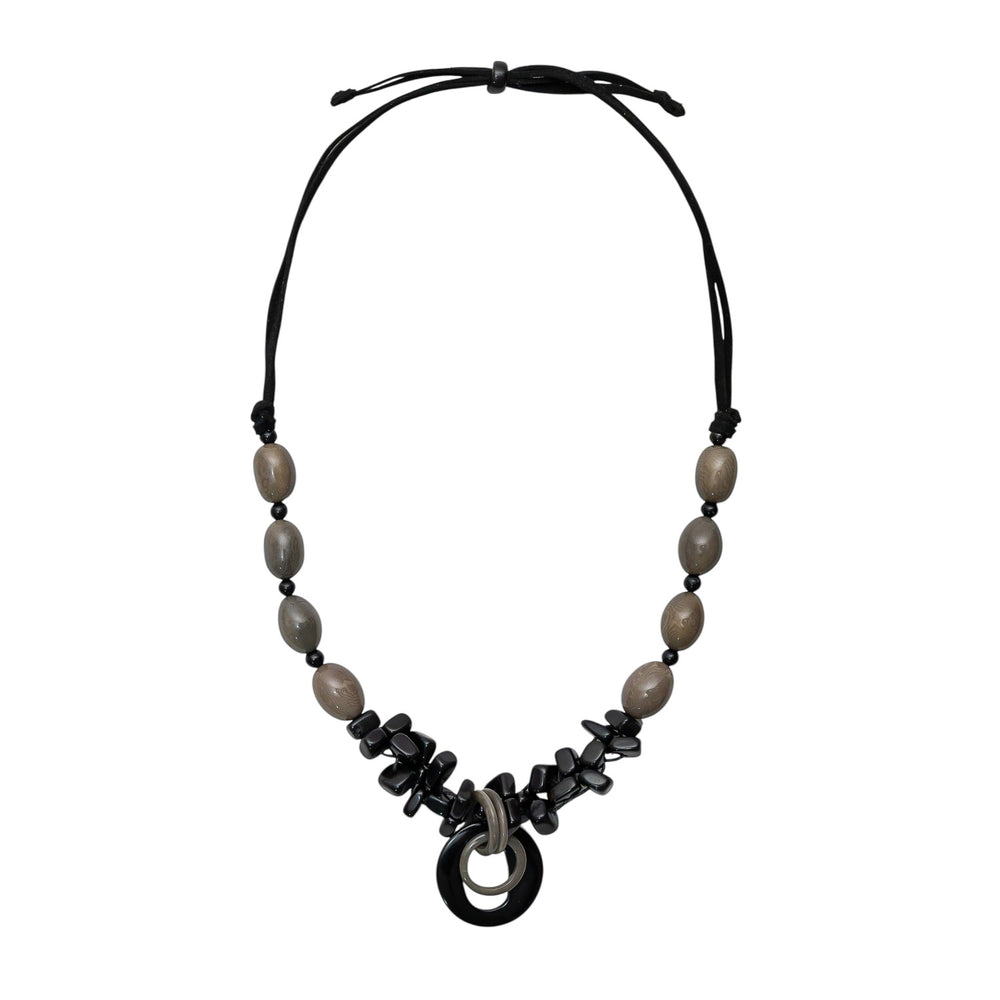 The Cara Necklace offers a refined pendant style with adjustable lengths from 18" to 30", showcasing an elegant arrangement of smooth, sustainable tagua pieces. This delicate design highlights eco-conscious craftsmanship while providing versatile wearability for both casual and formal occasions. Ideal for those seeking a subtle yet sophisticated accessory rooted in sustainability.
