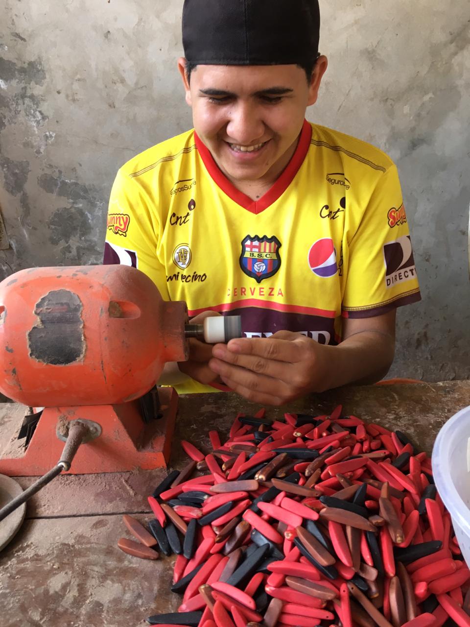 We use recycled pieces of wood that are native to Ecuador to create unique shapes that is used to make earrings, necklaces, or bracelets.