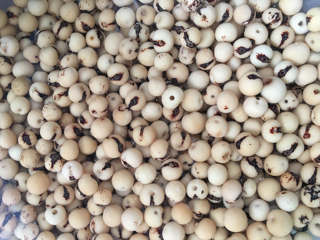 Acai berries are found on palm trees in the rainforest. Once gathered, they are dried out, dyed, and polished to create all natural beads for jewelry.