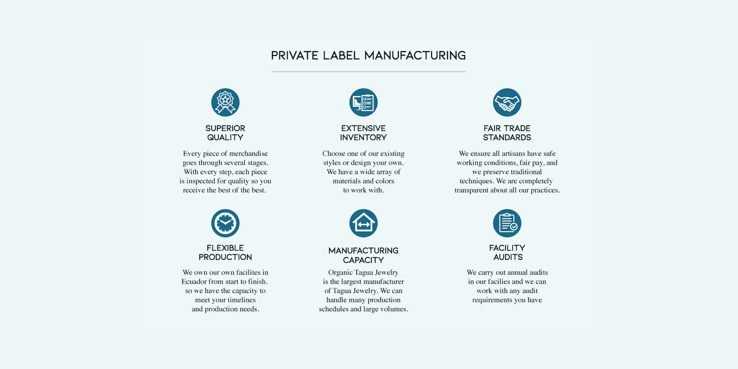 Organic Tagua Jewellery is the largest manufacturer of Tagua Jewellery in the world. Our handmade, sustainable brand can be found in over 3500 retail stores worldwide from major retailers, cruise ships, hotels, resorts, hospital gift shops, zoo, and to independent brand and designers. Our team in Ecuador takes prides in our roots and our culture. We would love the opportunity to work with you and create your own collection and meet all your needs that will reflect your ow brand. We partner with over 100 artisans.