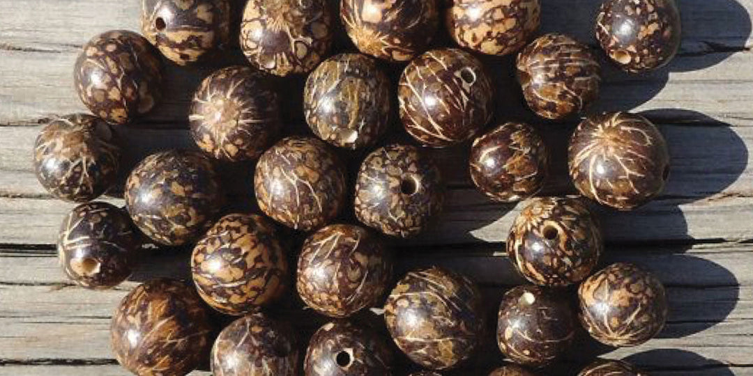Recycled coconut shells found in the rainforests and coastal parts of Ecuador are used to create unique pieces or to accent jewelry. This material adds a rich, luxurious look and can be carved into various shapes.